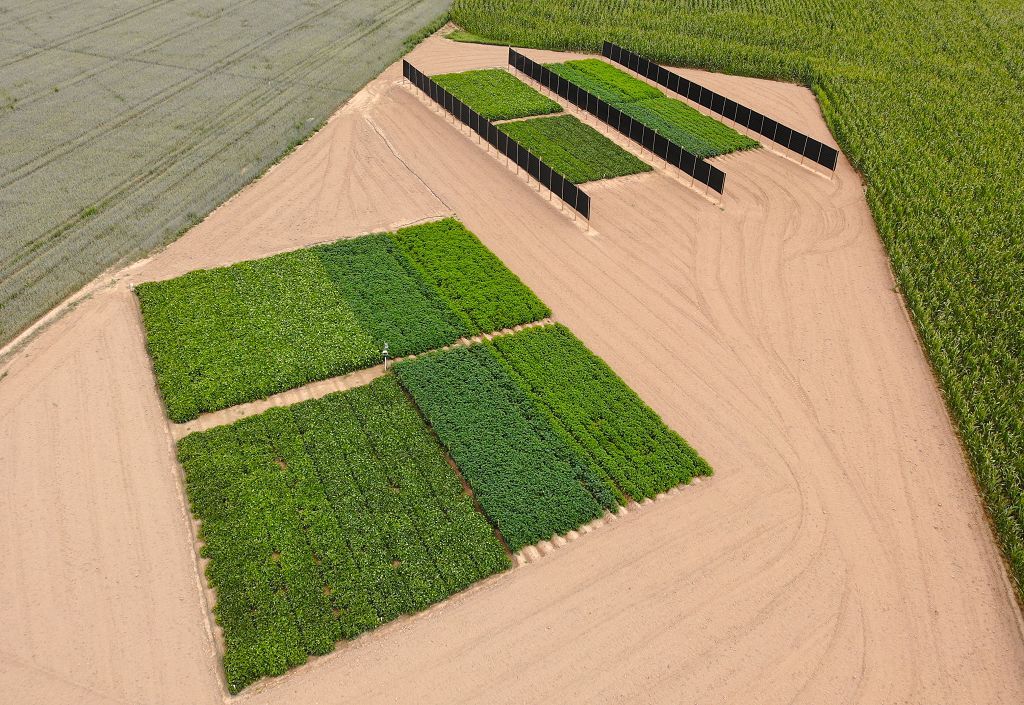 Ukázka pokusů s pěstováním brambor a sóji v systému agrovoltaických panelů |