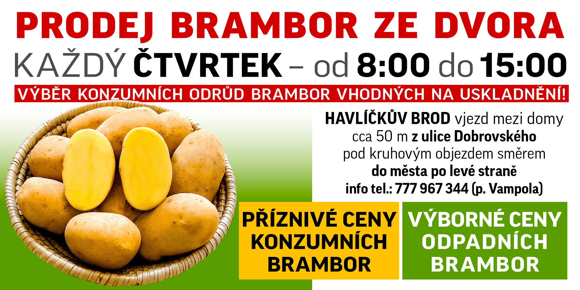 Prodej brambor 2023 bude zahájen 2.10.2023!